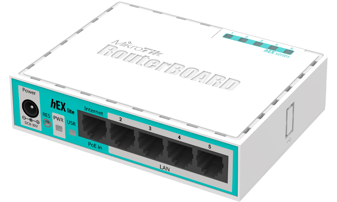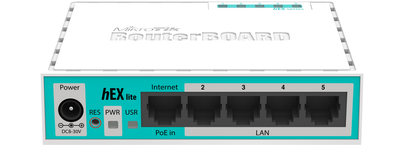 Der hEX lite ist ein Fünf-Port Fast Ethernet Router, der sich besonders gut für Standorte eignet, an denen keine drahtlose Konnektivität erforderlich ist. Er ist erschwinglich und kompakt, wird jedoch von einem leistungsstarken 850 MHz Prozessor mit 64 MB RAM angetrieben. Er unterstützt fortgeschrittene Konfigurationsfunktionen, die durch das RouterOS-System in der Lizenzstufe 4 bereitgestellt werden.