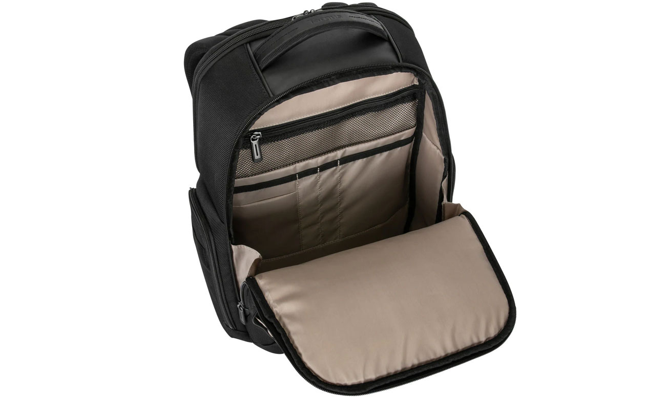 Zwei Hauptfächer im Targus Mobile Elite Backpack bieten ausreichend Platz für Gegenstände wie Laptop, Tablet, Dokumente und Zubehör, die Sie für die Arbeit benötigen. Innere Organizer helfen Ihnen, das Innere des Rucksacks ordentlich zu halten.