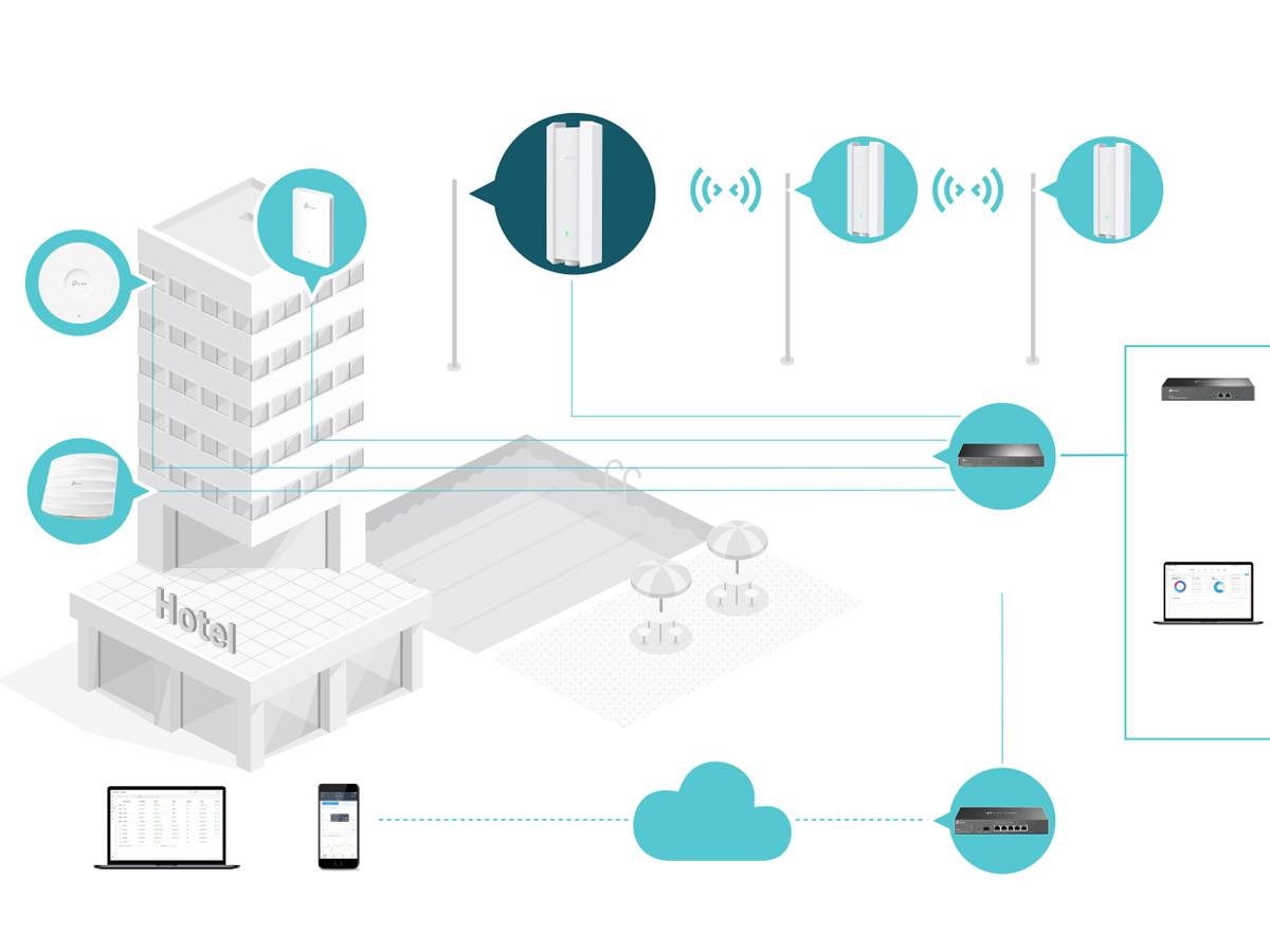 Die Omada Software Defined Networking (SDN)-Plattform integriert Netzwerkgeräte wie Access Points, Switches und Router, um ein 100 % zentralisiertes Cloud-Management zu bieten und ein hochgradig skalierbares Netzwerk zu ermöglichen – alles gesteuert über eine einzige Schnittstelle.