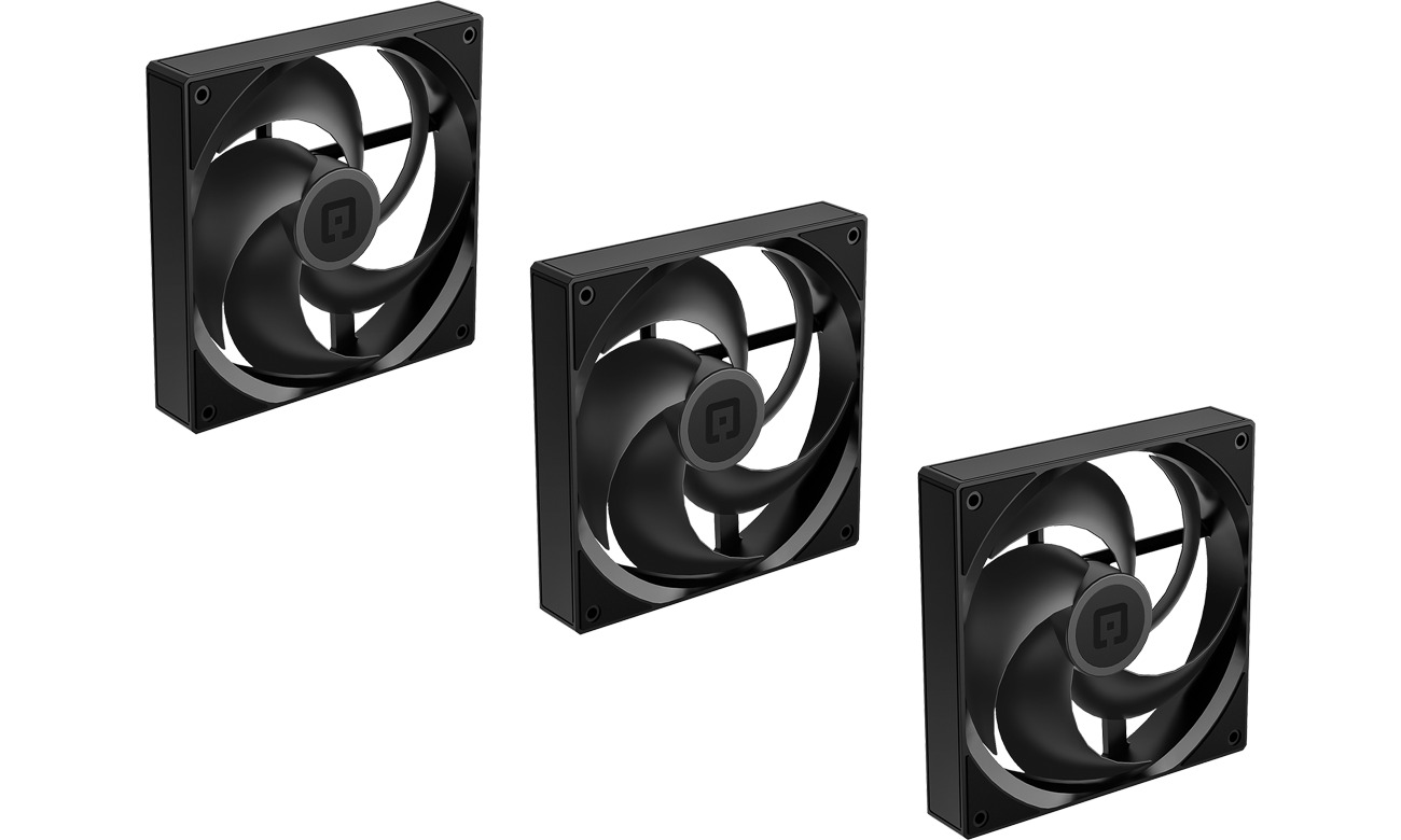 Die Lüfter sind mit speziellen gummiartigen Vibrationsdämpfern ausgestattet, die die auf das Gehäuse übertragenen Vibrationen deutlich reduzieren.