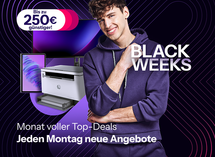 Die dritte Runde der Black Weeks ist da – mit noch mehr Technik, noch mehr Highlights und noch mehr Sparpotenzial! Entdecke frische Angebote aus allen Kategorien: von Smartphones und Tablets über Monitore bis hin zu Gaming-PCs, Komponenten und Zubehör.