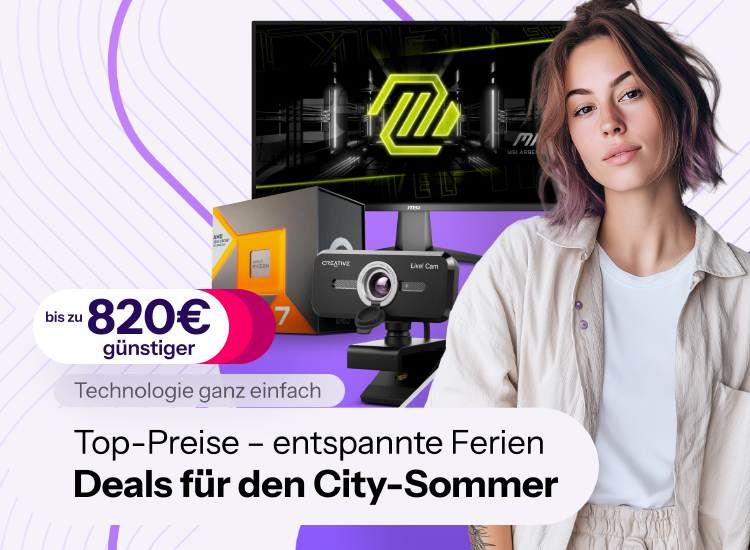 Sommerzeit ist Erholungszeit – und dafür musst du nicht weit wegfahren. Mit der richtigen Technik wird dein Urlaub in der Stadt zum echten Highlight! Ob chillige Abende mit Projektor und Soundbar, kreative Ausflüge mit dem Gimbal oder der Action-Cam, entspannte Vibes dank Bluetooth-Lautsprecher, oder produktive Tage mit Smartwatch, Powerbank und Solarpanel – in unserer City-Sommer Aktion findest du alles, was deinen Sommer smarter, lauter und spannender macht.