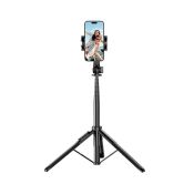 Auf dem Markt sind auch Selfie-Sticks mit Stativ-Option erhältlich. Sie vereinen zwei Funktionen – Stativ und Stick. Der Wechsel von der Halterung zum Stativ dauert nur einen Moment und erfolgt durch eine Änderung der Konstruktion des Griffs. In wenigen Sekunden verwandelt sich der Stick problemlos in ein professionelles Studiostativ oder einen Monopod. Danach musst du nur noch den Selbstauslöser aktivieren und posieren.