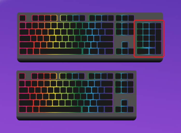 - Gaming-Tastatur ohne Numpad-Sektion: Diese Modelle sind kürzer und bieten dir mehr Platz für die Steuerung per Maus. Das ist besonders wichtig, wenn deine Maus mit geringer DPI-Auflösung arbeitet. Solche Tastaturen werden auch TKL oder Tenkeyless genannt.